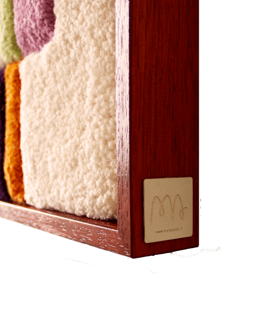 Het wandkleed is in cutpile getuft met 100% Nieuw-Zeelandse wol.